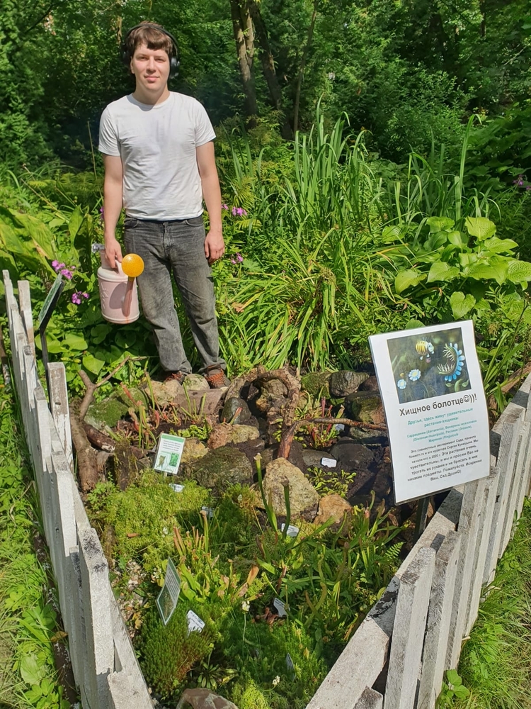 Научный сотрудник Сада Андрей Бабаян провел работу по реконструкции и расширению самого первого из созданных "хищных болот" в Саду. Оно было заложено в 2019 году и изначально на нем были высажены виды и формы родов Саррацения и Венерина мухоловка. Сегодня здесь живут и росянки, и жирянки, и дарлингтонии. Есть образцы из природных популяций России. Идет уникальный эксперимент по адаптации растений, выращенных в условиях меристемной лаборатории на стерильных средах (совместно с Центральным ботаническим садом НАН Беларуси в Минске).
