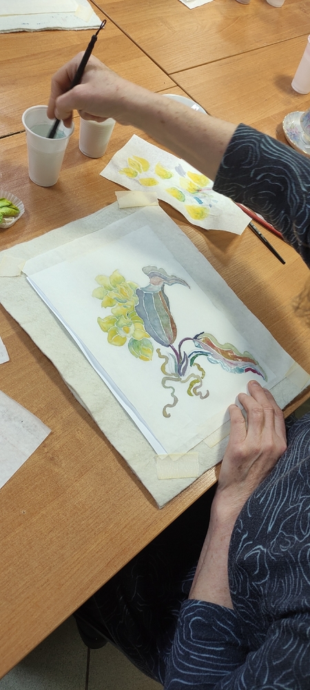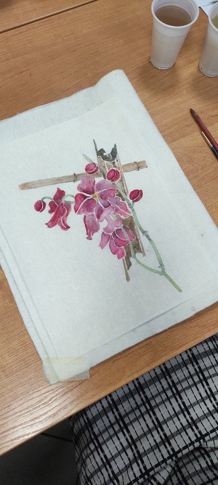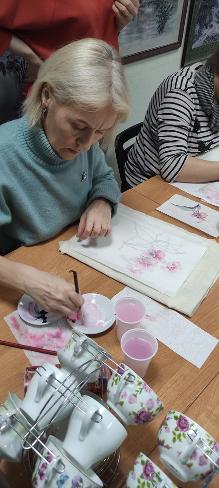 Вместе с художником Еленой Коцюбинской рисовали орхидею в технике Могуфа 沒骨法, что буквально означает «бескостная», «не имеющая костей», то есть в рисунке не используется тушевой контур и штрихи, только красочные пятна или линии.