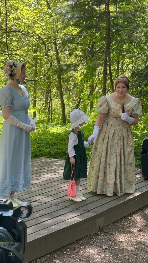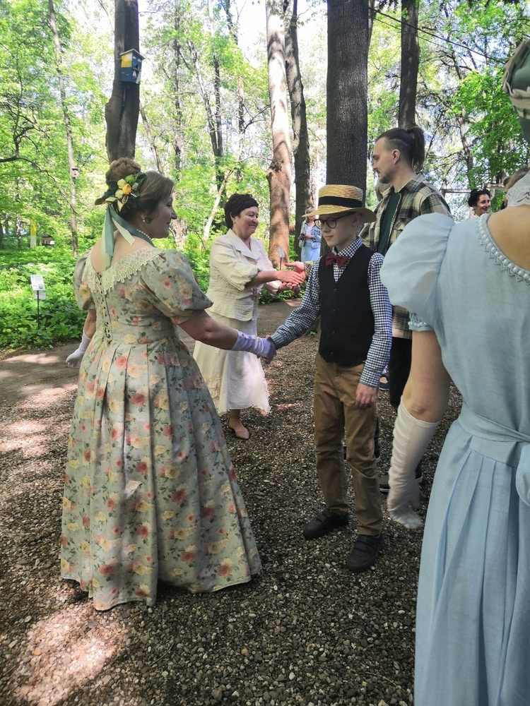 На праздник состоялся настоящий бал. Простые, но увлекательные танцы в формате мастер-класса для всех гостей Сада. Распорядители и танцмейстеры бала Андрей Нисенбаум и Ася Манина, преподаватели студии исторического танца "Трианон" (г. Москва).