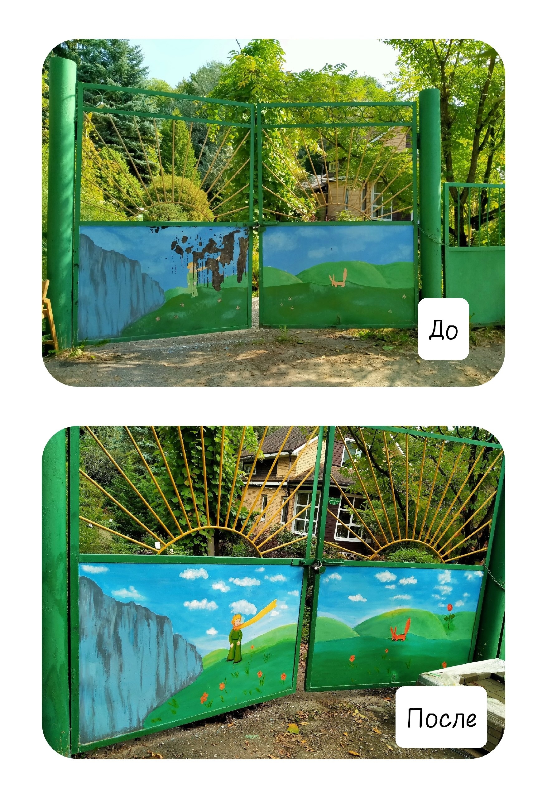 Ворота Сада снова «расцвели» яркими и радостными красками. А на мир прямо с поверхности ворот вновь стал смотреть – Маленький принц! Тот волшебный маленький мальчик из сказки Экзюпери, с его собственного эскиза. Случилось чудо!