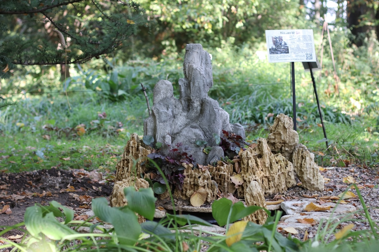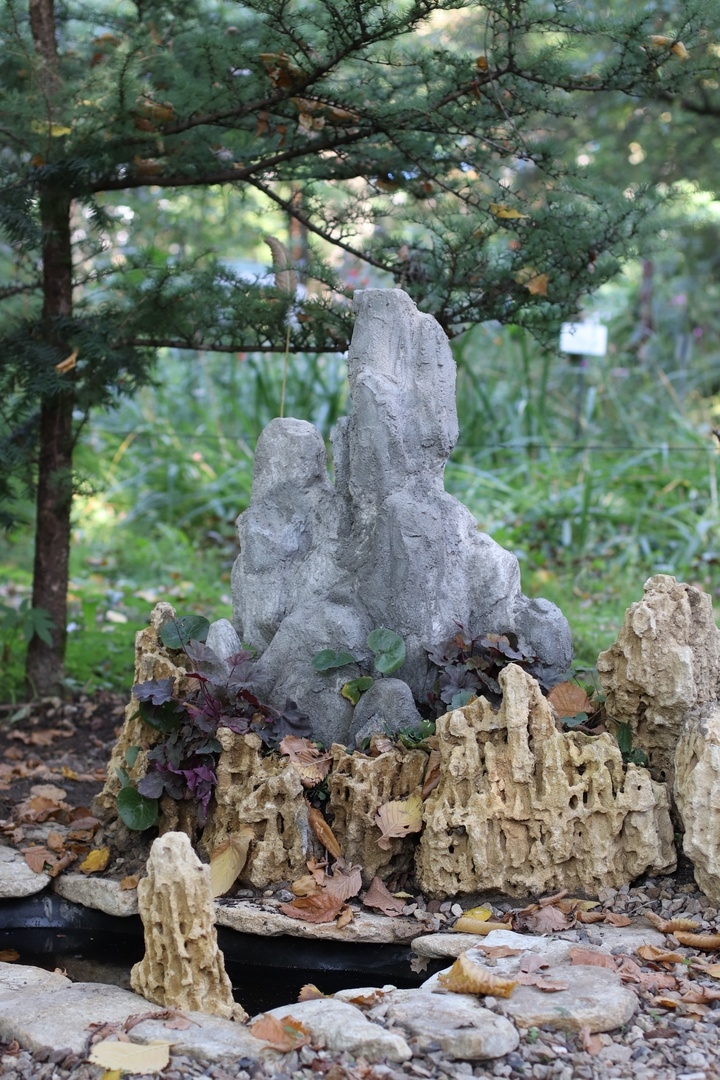 Теперь и в старинном парке Сада Души есть наш собственный Хон Нон Бо, работа над которым была начата в прошлом 2023 году и продолжена этим летом. А сейчас на миниатюрных скалах нашего Хон Нон Бо появились растения и это сразу преобразило этот мини-пейзаж. Теперь в маленькое озеро у подножия скал смотрятся камнеломки, копытни, гейхеры хосты и папоротники.
