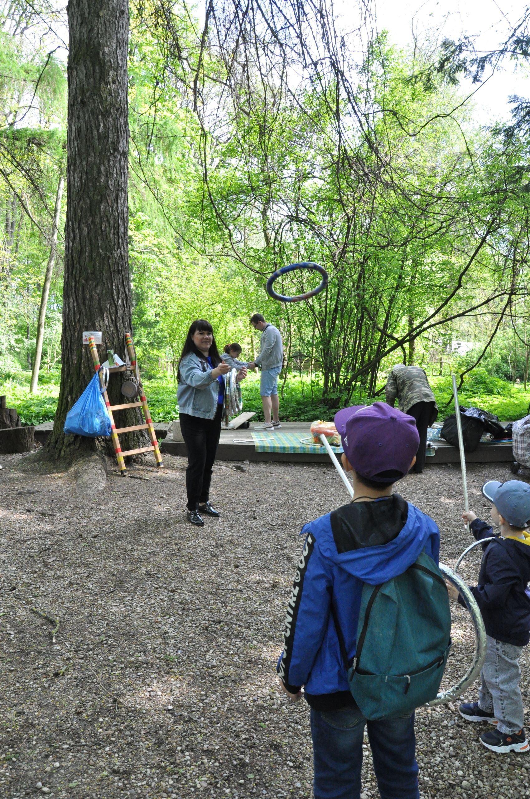 активная площадка, где маленькие и взрослые гости Сада смогли попробовать себя в хождении на ходулях, стрельбе из лука, метании колец на шпаге, эквилибре на катушке и других упражнениях под руководством опытного циркового артиста Василия Алексеевича (Школа циркового мастерства "Радуга").