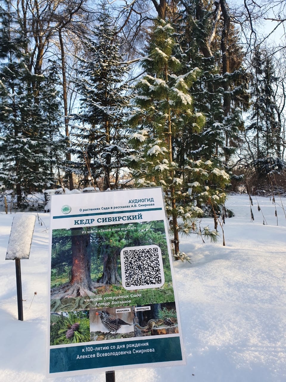 Год А. В. Смирнова в Саду Души стартовал, и в старинном парке сада уже появился новый аудиогид. На тропах сада размещены замечательные таблички, на которых вы увидите QR‑коды — просто поднесите смартфон, считайте код и слушайте маленькие, но увлекательные рассказы о деревьях из книг А. В. Смирнова.